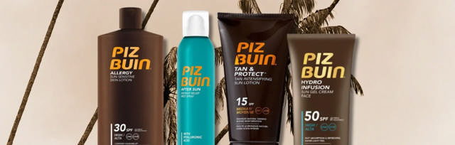 Piz Buin er et anerkendt mærke, som tilbyder velduftende solbeskyttelsesprodukter der går ind og beskytter din hud fra solens farlige stråler og giver dig en smuk glød. Alle Piz Buins solplejeprodukter indeholder UVA og UVB, som effektivt beskytter din hud fra skadelige UV- stråler. TPiz Buin har et bredt udvalg af solbeskyttelsesprodukter og nogle af produkterne indeholder en let bronze farve, som giver en smuk naturlig glød og farve, helt uden selvbruner. Solprodukterne trænger effektivt ind i huden og efterlader din hud med en sund glød. Alle Piz Buins produkter er vandafvisende og kan derfor benyttes på en strandtur, eller i poolen.